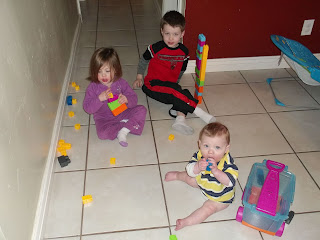 The wrestling has begun! Weston does this a lot. He'll put his head in Jonas' lap and let J climb all over him, pull his hair, and otherwise wreak havoc. Not much of a wrestler but an excellent big brother! ;)